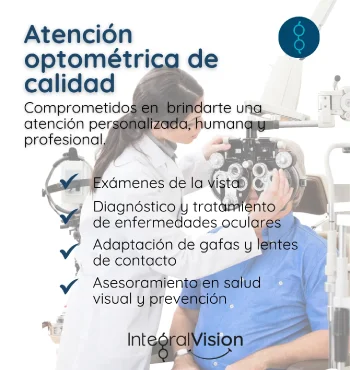 Desde 2007, en Integral Vision hemos cultivado la confianza con cada persona que nos permite entrar a su hogar o empresa. Nuestra pasión por la salud visual impulsa a nuestro equipo de profesionales a ofrecer un servicio especializado de optometría, siempre guiado por principios éticos, de rigor clínico y, sobre todo, por un profundo enfoque humano.